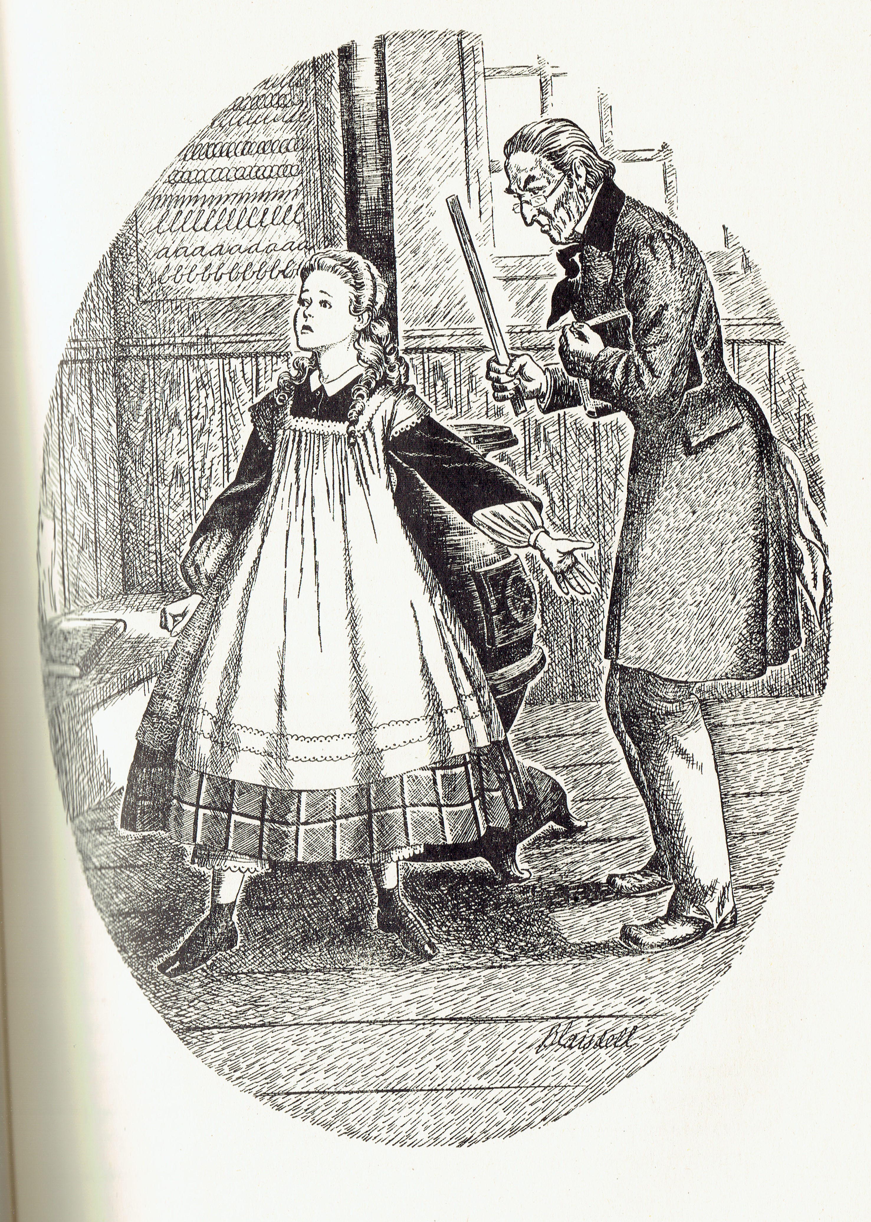 So, the other night, I started looking through my books for photos of kids getting punished at school. I was hoping to find an illustration of Amy March getting swatted after the pickled lime incident.