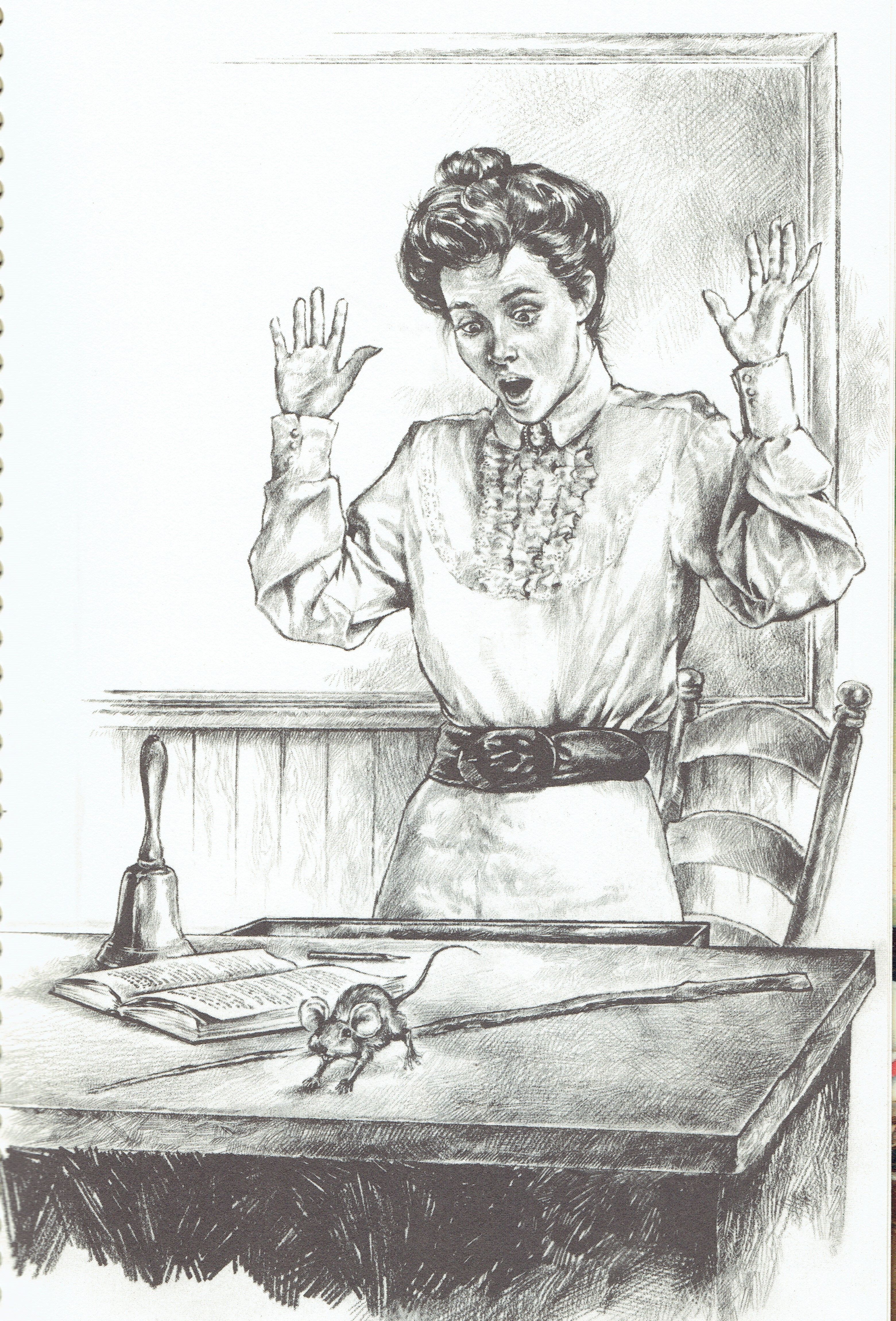 She came up with some great text, but we knew we needed a visual. There aren’t a lot of artifacts that are specific to school discipline, and that’s definitely something that probably wasn’t captured in a photograph. Someone else (not me!) said “why don’t we look at children’s literature and see what we can find? And I think we know someone who has quite a collection. . .” All eyes turned to me.